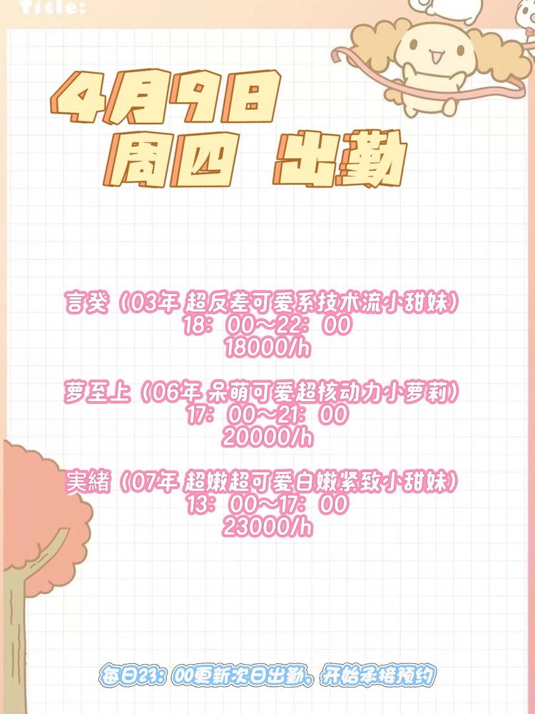 4月9日 周四出勤 |