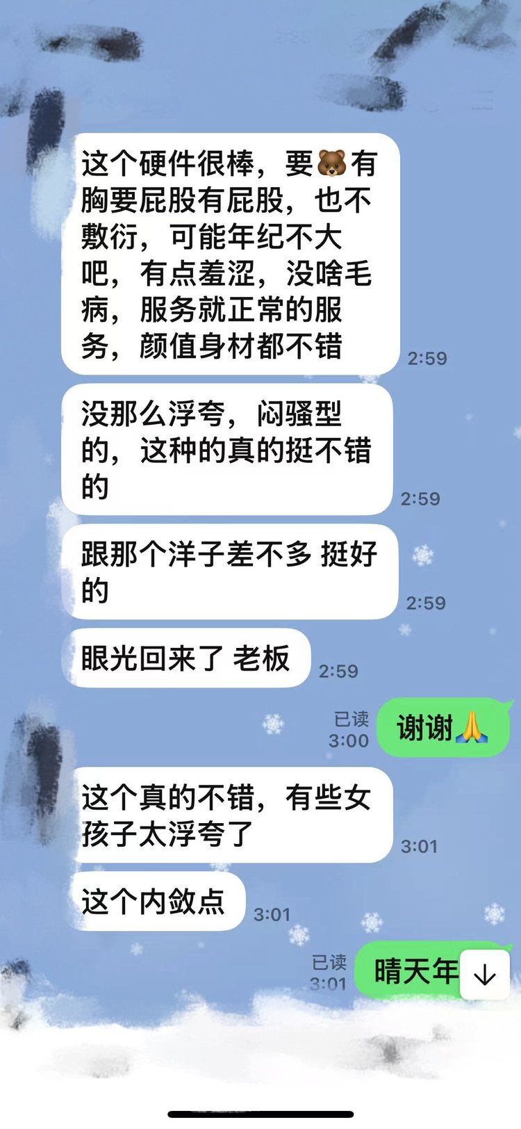 💕鲜嫩多汁,主打嫩!嫩嫩!00后可爱小女孩,极品美女!清纯可爱,皮肤细腻光滑细嫩,咪咪揉起来很有手感,温柔体贴服务好,❤️抽插时候感觉下面很紧,娇喘也很诱人,柔媚勾魂,服务上乘,态度极佳,绝对的身材控颜值控。特点就是年轻,嫩!三点粉嫩粉嫩,小鲍紧的感觉无法呼吸,绝对的女神级别,😍还请小哥哥们温柔对待!
